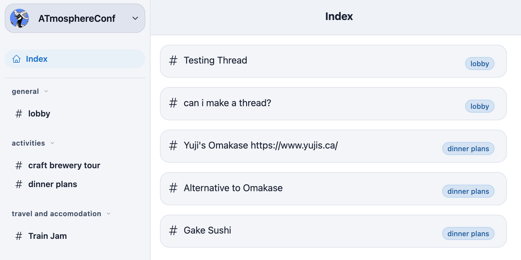 Join the Roomy space at roomy.space/atmosphereconf.org which is live now.